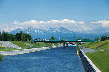 初心者にも人気の忠別川サイクリングロードや牛朱別川沿いなど、常に川と並行しながら走る旭川の名物コース。遥か遠くには大雪山連峰が悠然と横たわるなど、眺めも最高。25Km過ぎからはゆるやかな下り坂が続く。高低差も少ない初~中級者向け。